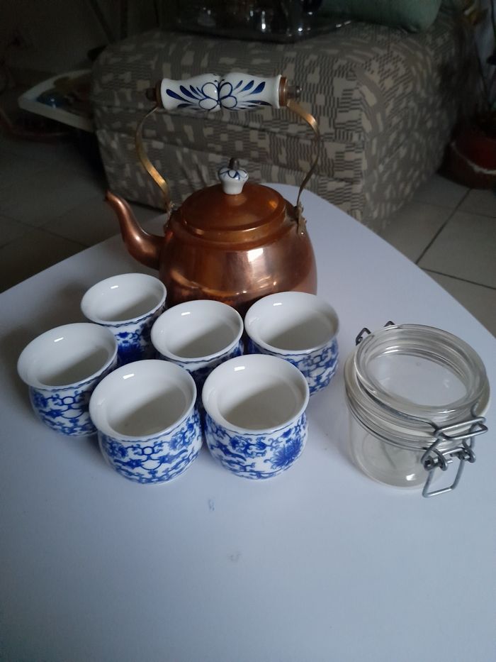 6 tasses et sa cafetière en cuivre