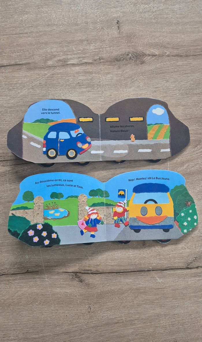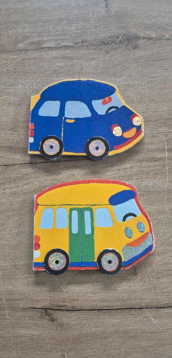 Lot de 2 livres à pages cartonnées avec les roues qui tournent : - La voiture bleue - Le bus jaune Bettina Paterson Très bon état