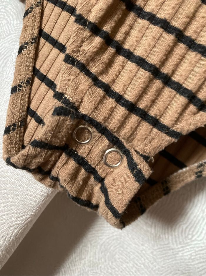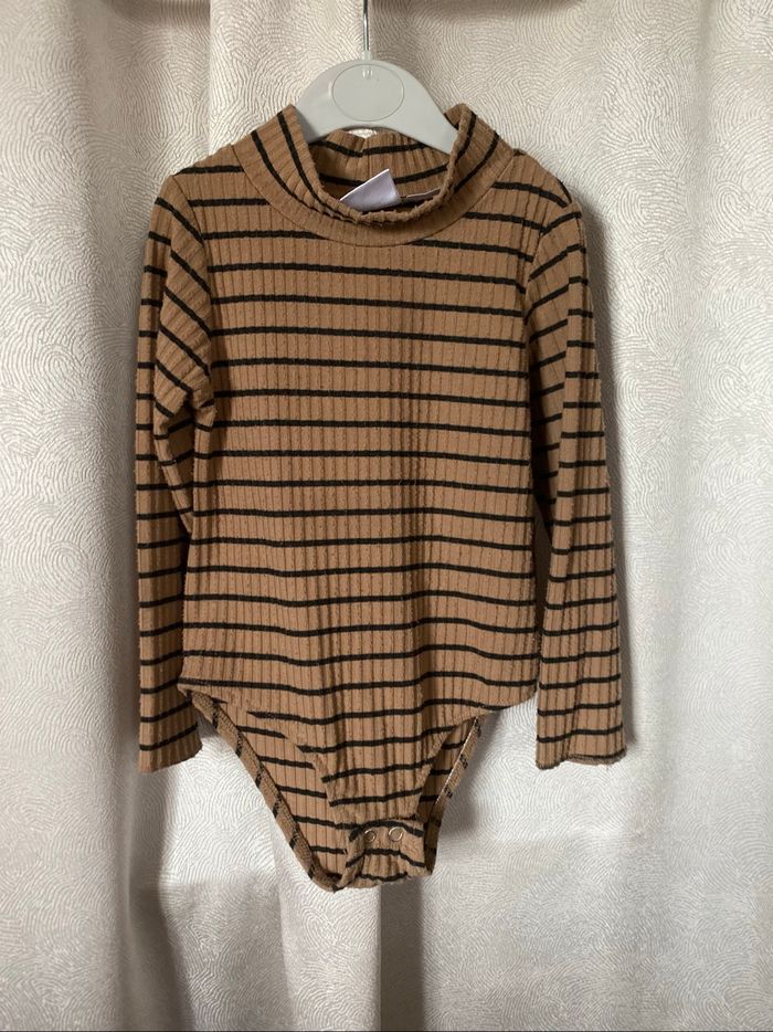 Body T-shirt beige rayures noires Col montant Manches longues Taille 3-4 ans 104 cm 63 % polyester 31 % viscose 6 % élasthane Zara Bon état à cause des bouloches