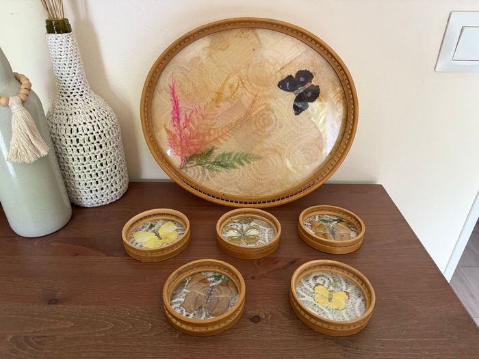 Plateau avec 5 sous verres motifs papillons - Vintage - photo numéro 1