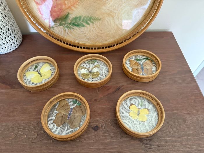 Plateau avec 5 sous verres motifs papillons - Vintage - photo numéro 10