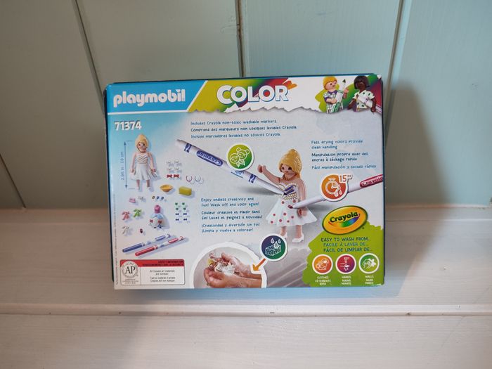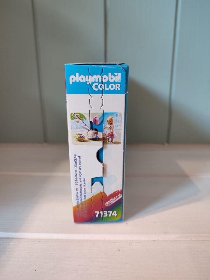Produit neuf 71374 Playmobil Color Le coffret comprend un personnage, deux jupes, deux feutres CRAYOLA et de nombreux accessoires. Tous les feutres CRAYOLA inclus sont lavables et non toxiques.