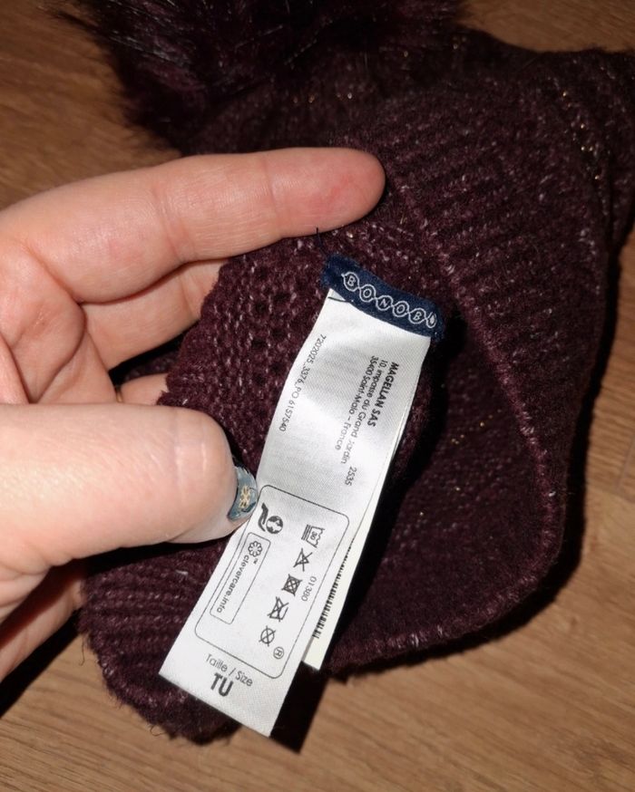 Adoptez un look tendance et cocooning avec ce bonnet bordeaux de la marque Bonobo, porté une seule fois et donc en excellent état.