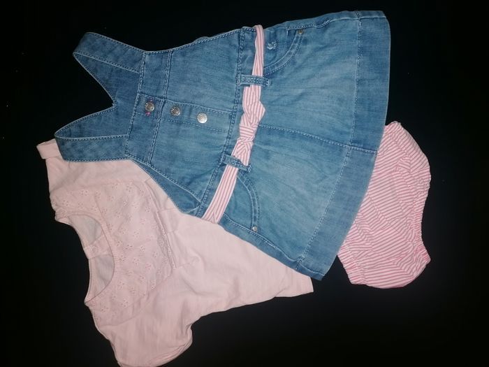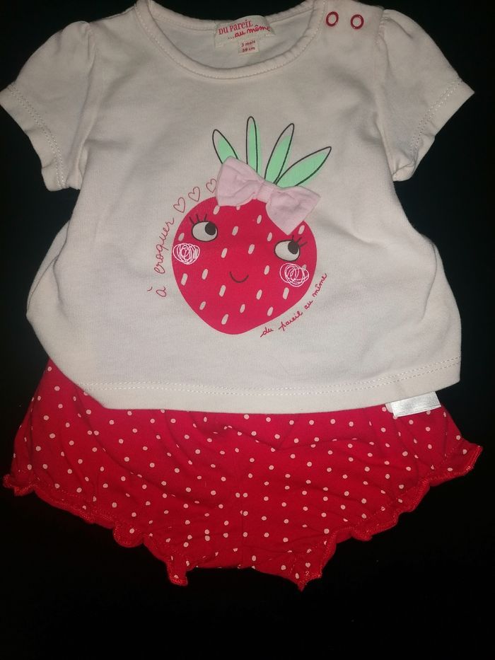 Lot vêtements 3 mois composé de 1 ensemble okaidi robe culotte et t-shirt 1 t-shirt Tape à l'œil 1 pantalon la redoute 1 legging tape à l'œil 1 ensemble du pareil au même