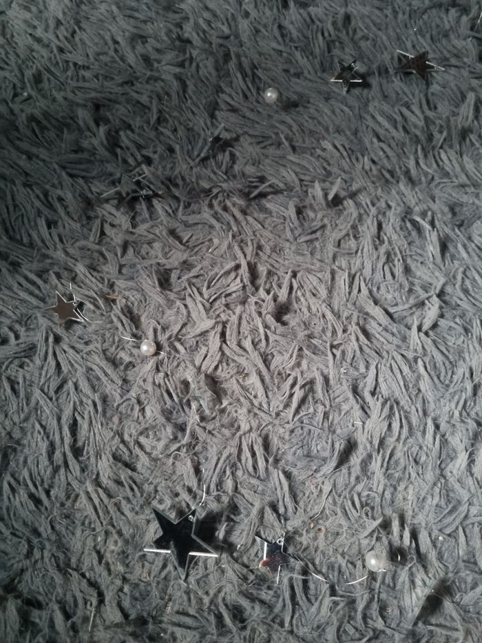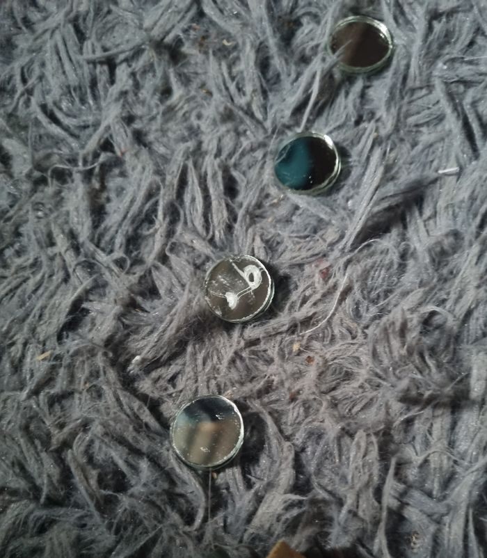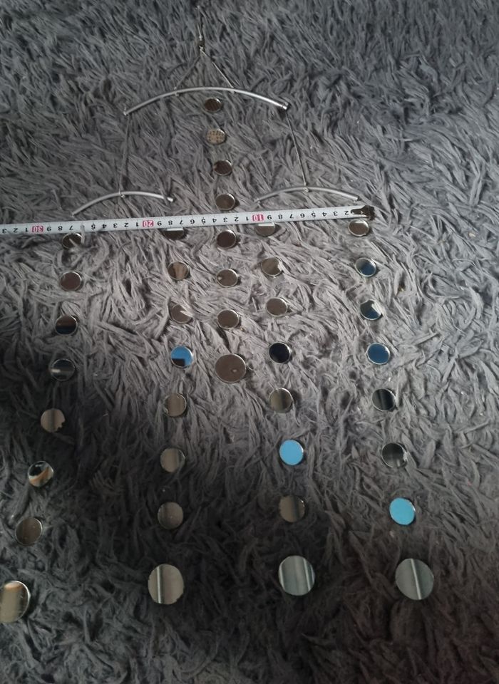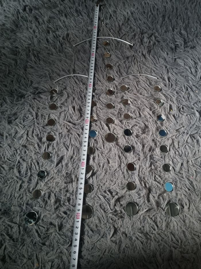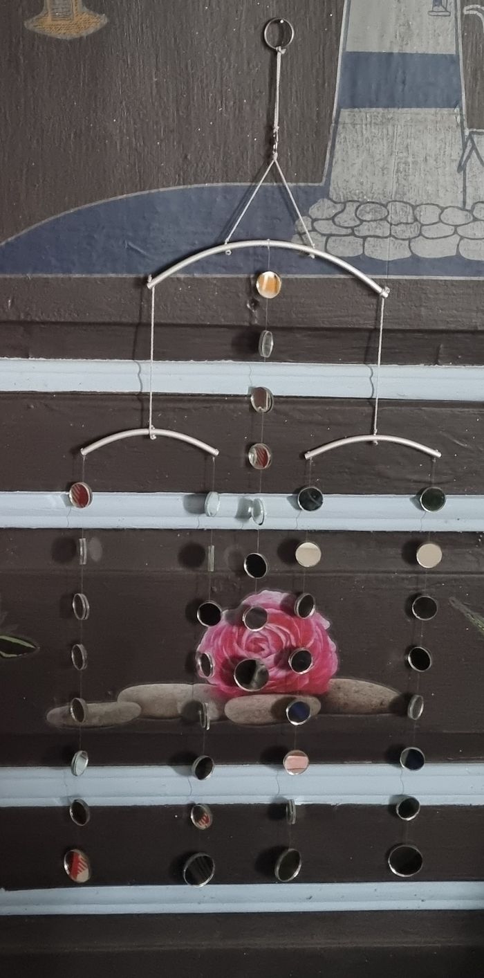 Lot décorations : un carillon à miroir (un miroir à de la colle) et une guirlande étoiles miroir en fil de fer.
