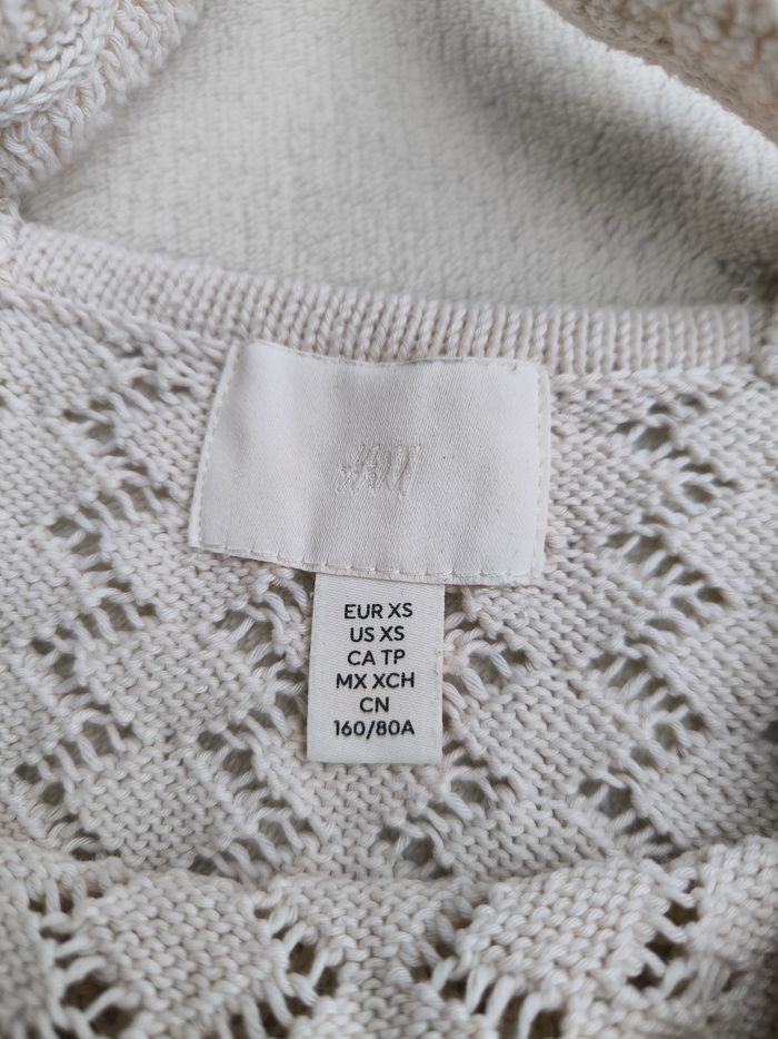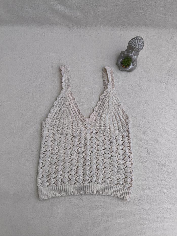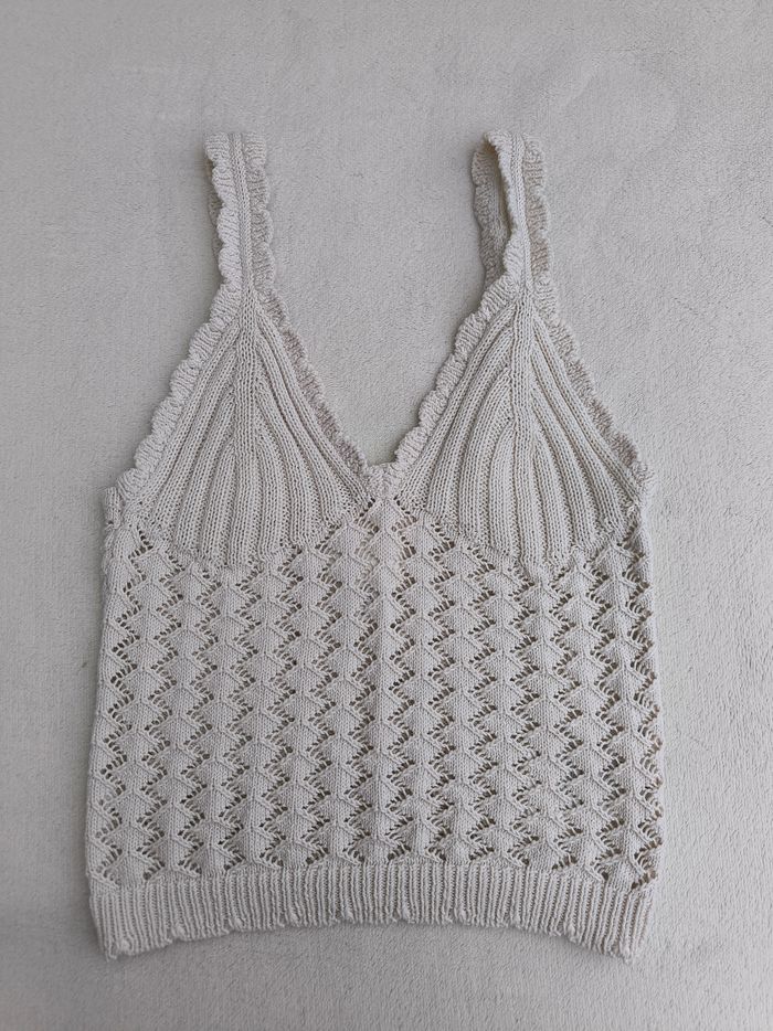 Débardeur court à bretelles Marque H&M Taille XS, 34 • Coloris crème • Mailles ajourées • Façon crochet • Stretch Largeur aisselle à aisselle non étirée : 30 cm Largeur aisselle à aisselle étirée au maximum : 40 cm Longueur totale : 43 cm Longueur aisselle : 24 cm Comme neuf #evelyne_taille_34