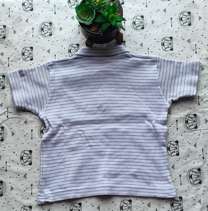Polo blanc et rayé gris en très bon état de la marque Petit Bateau pour garçon taille 24 mois / 2 ans