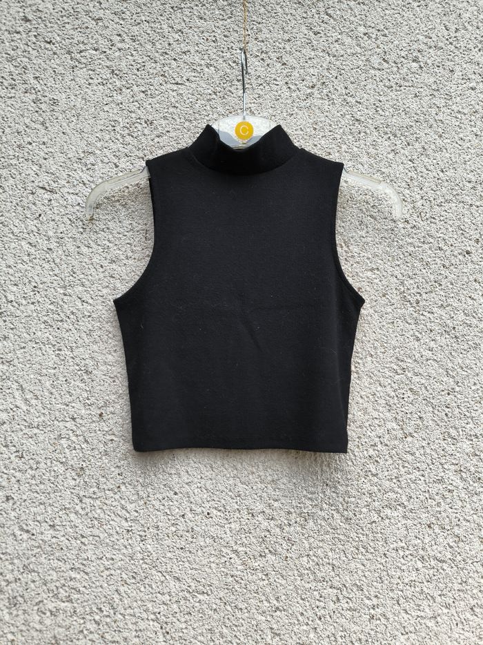 Débardeur Marque Kiabi Taille XXS, 32 • Coloris noir • Col montant • Côtelé • Stretch • Quelques bouloches Largeur aisselle à aisselle non étirée : 34 cm Largeur aisselle à aisselle étirée au maximum : 58 cm Longueur totale : 41 cm Longueur aisselle : 21 cm En très bon état #evelyne_taille_32