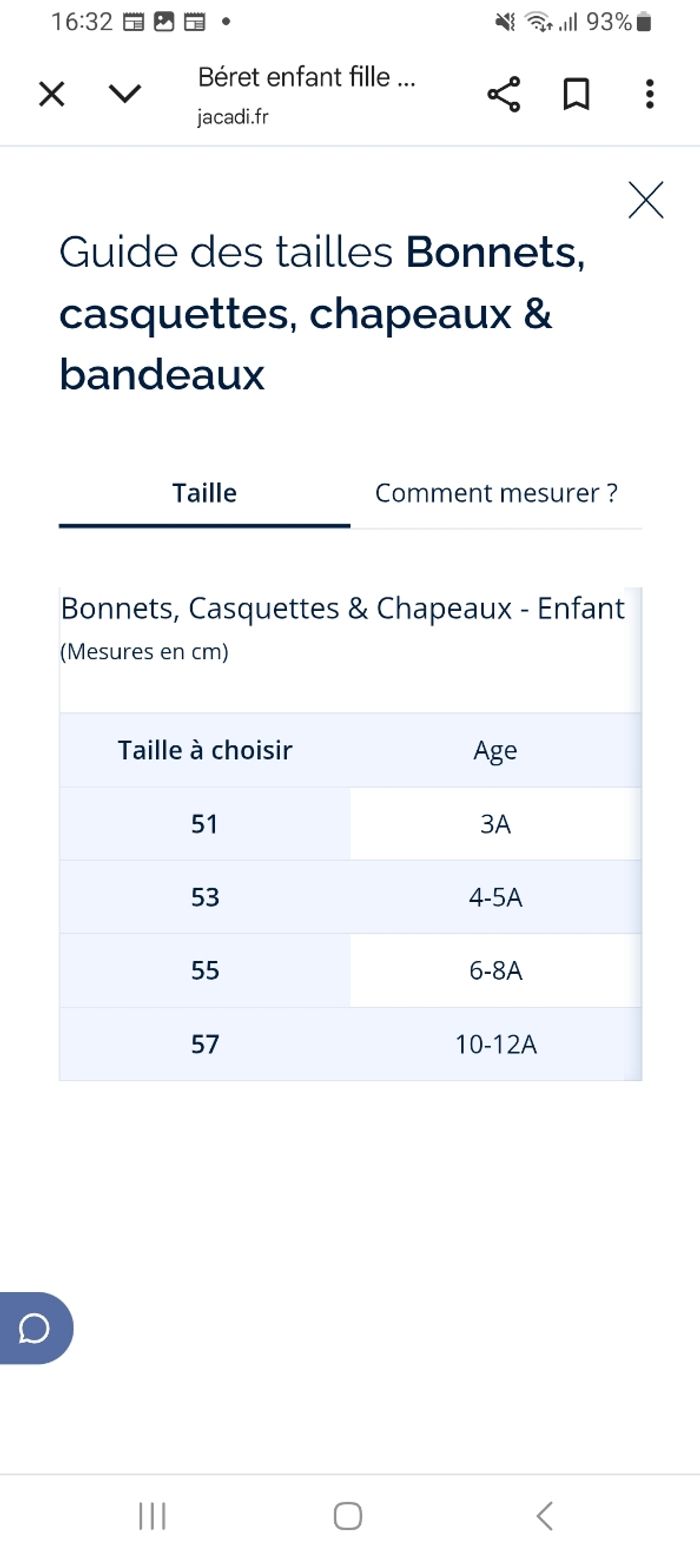 TailleEnfant 3 ans et plus