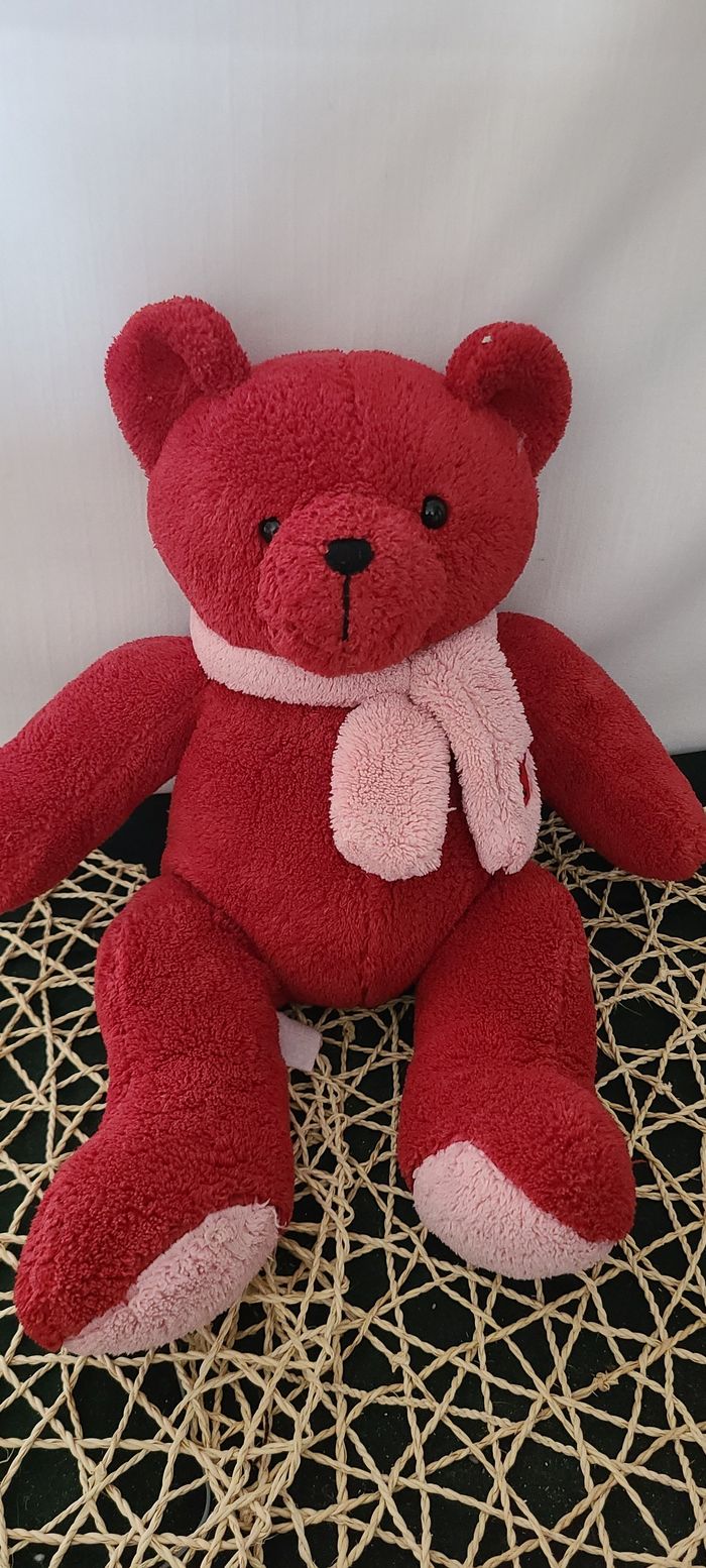 Doudou ours rouge FRANCE LOISIRS