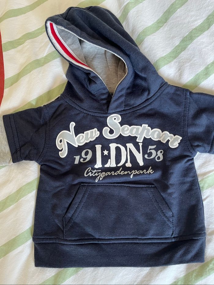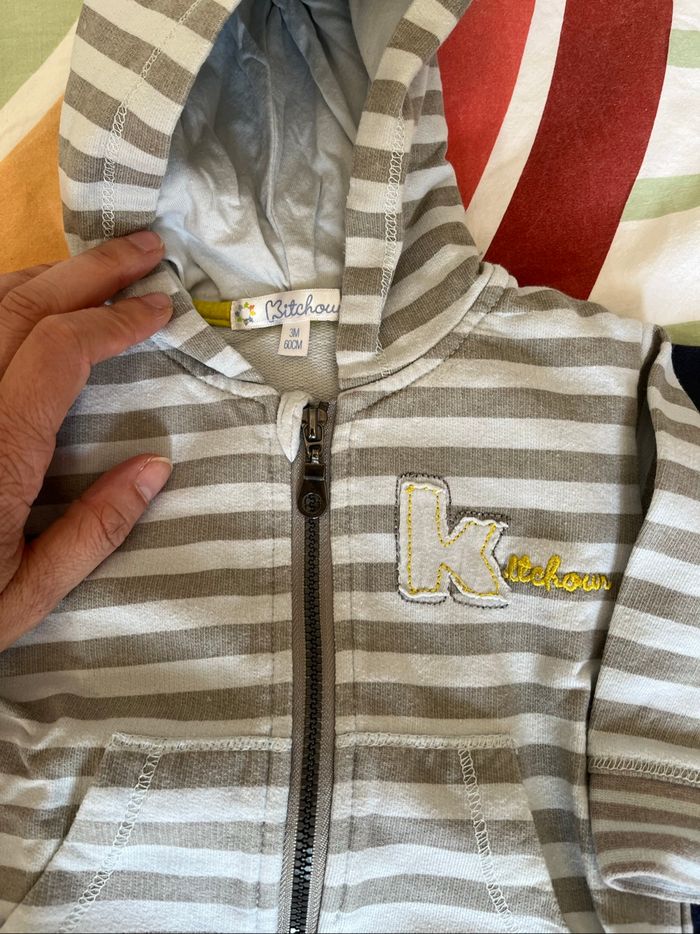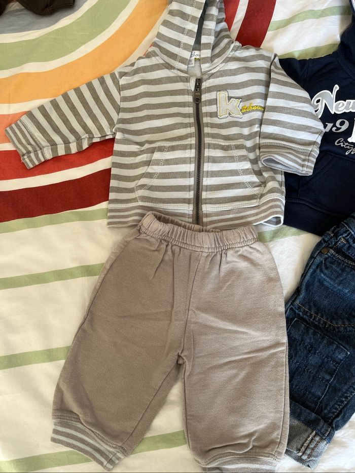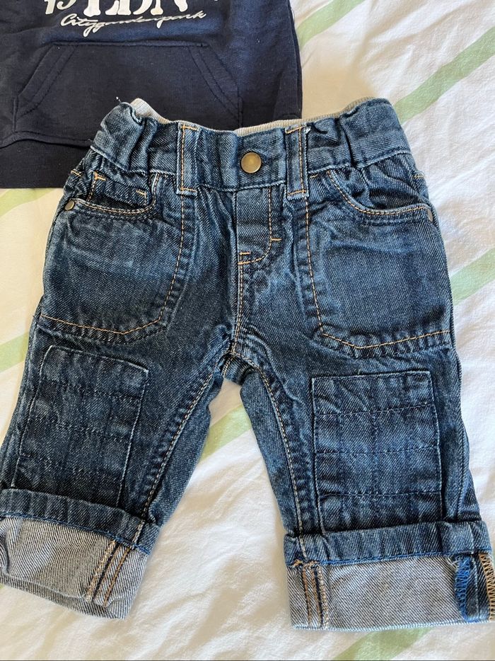 Deux tenues bébé garçon Taille 3 mois Excellent état Ensemble jogging gris/bleu clair Kiabi kitchoun Jean c&a Teeshirt rayé multicolore orchestra Pull à capuche bleu et gris graine de kid #liliesouris #dinan #saintmalo #combourg #2025 #grainedekid #orchestra #ca #kiabi #kitchoun #garcon3mois #automne #hiver