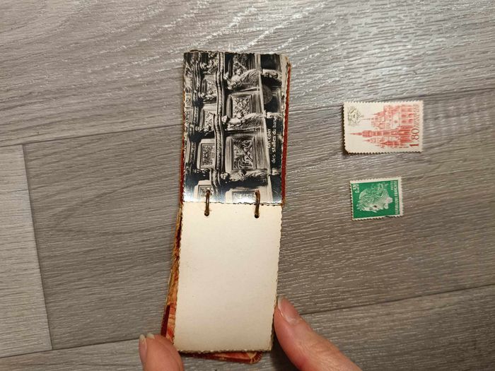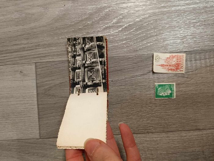 Petit carnet vintage de photo et noir et blanc et deux anciens timbres - photo numéro 2