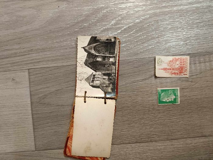 Petit carnet vintage de photo et noir et blanc et deux anciens timbres - photo numéro 1
