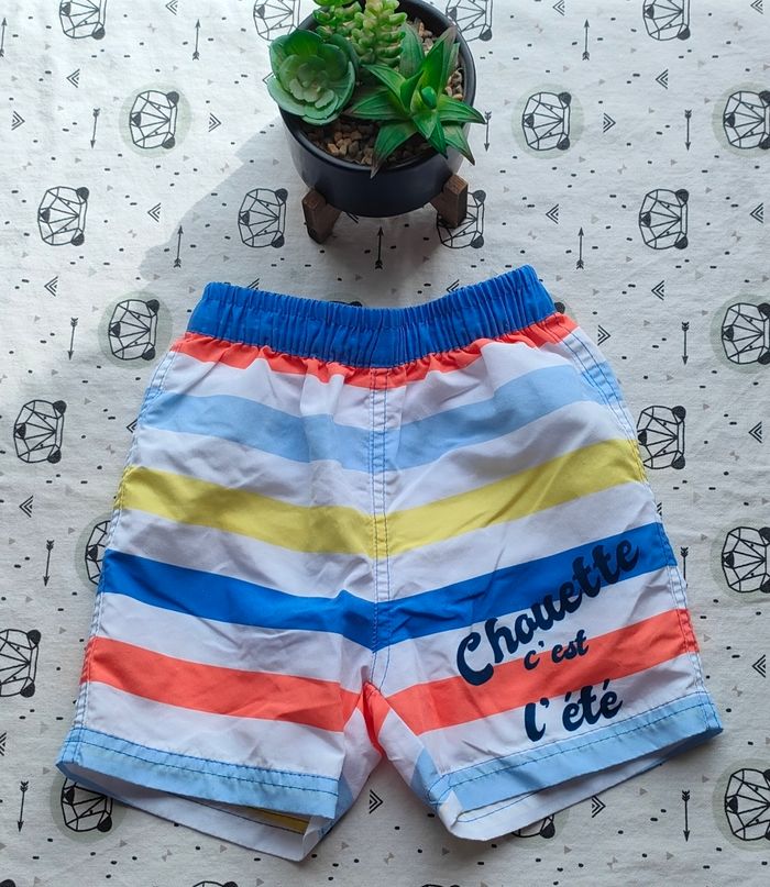 Short de bain rayé bleu/rouge/blanc/jaune en très bon état sans marque pour garçon taille 2/3 ans