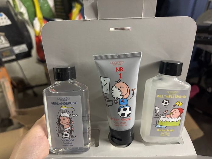 Shampoing 110ml + bain moussant 110ml + lotion après rasage 60ml