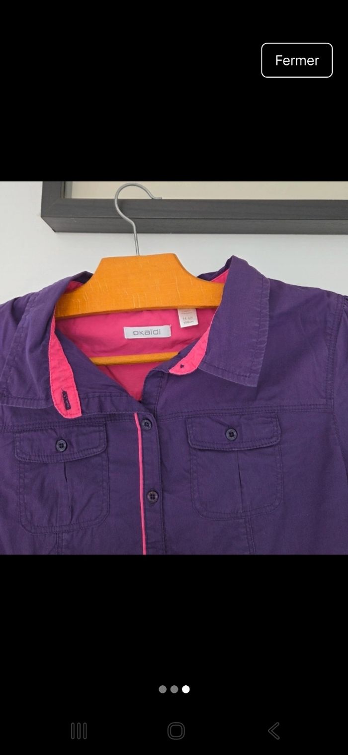 《 N'hesitez pas à faire un tour dans la boutique réduction sur lots 》 🙂👍 🐻 Chemise violette ☆ Peu porté 🌸 Taille : 14 ans 🌸 Marque : Okaïdi