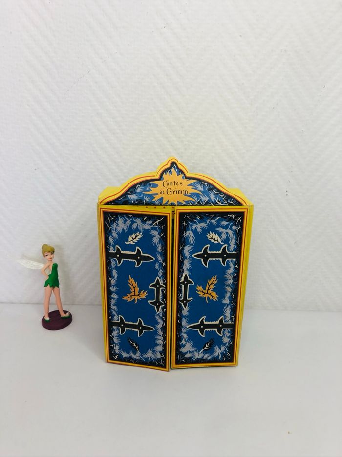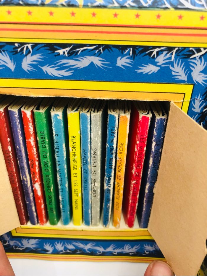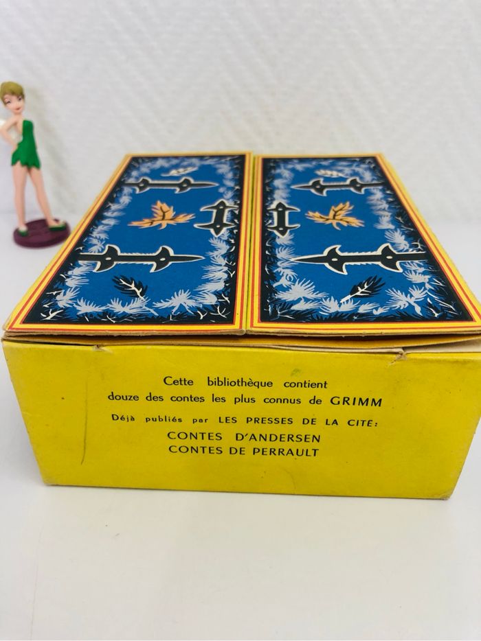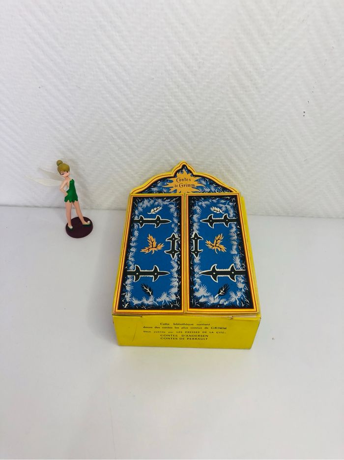 Petite bibliothèque contenant 12 contes de Grimm. - Titre : Contes de Grimm - Genre : Livre pour enfant - Nombre de contes : 12 mini livres en carton En bon état voir photos