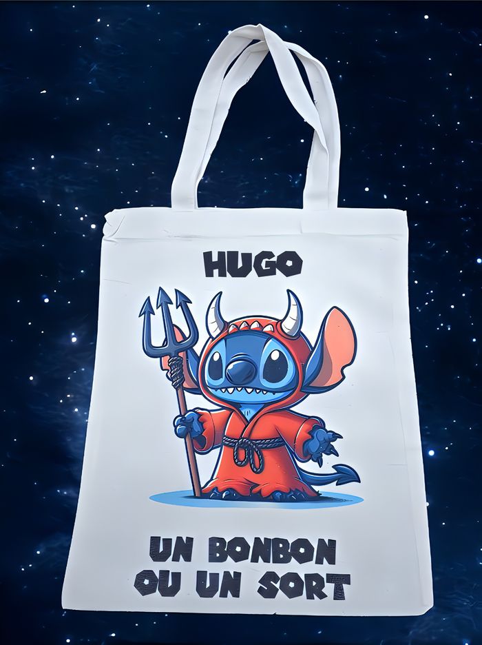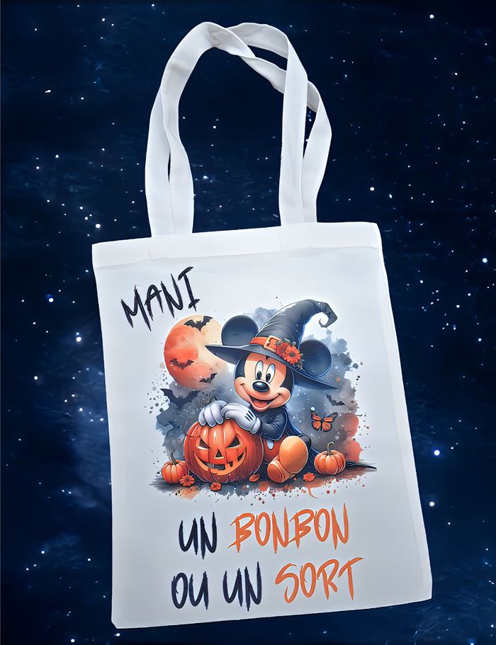 Totebag personnalisé spécial halloween taille 30*35 environ sans les anses sac robuste stitch, mickey, minnie, mario, star wars, spiderman, winnie, pikachu, hulk etc me contacter par messages si vous désirez un autre dessin sur le sac Prénom de votre choix Je suis dispo par messages si besoin