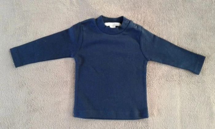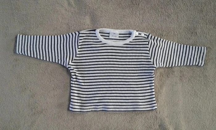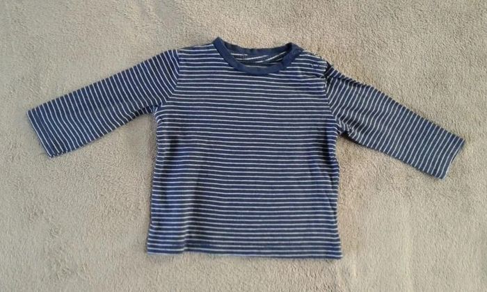 Lot de 6 t-shirts manches longues garçon 6mois - bleu foncé orchestra broderies pattes de chat peu porté - bleu primark - marine fines rayures in extenso - gris a rayures Zara baby - style mariniere - bleu ciel tout compte fait #virgy61garcon6mois