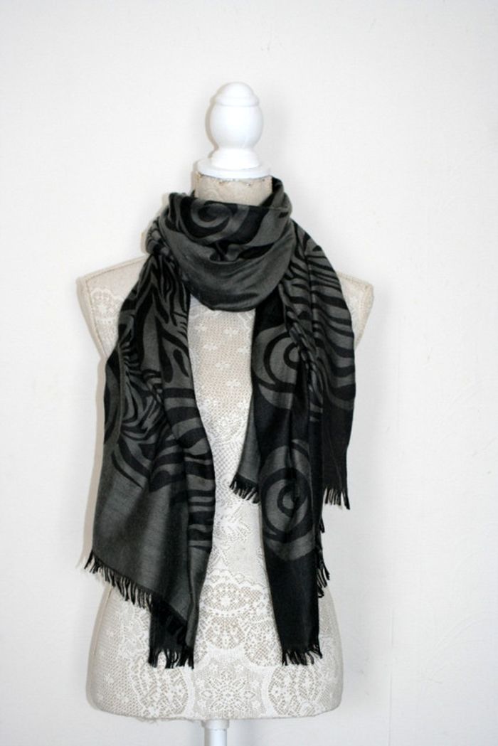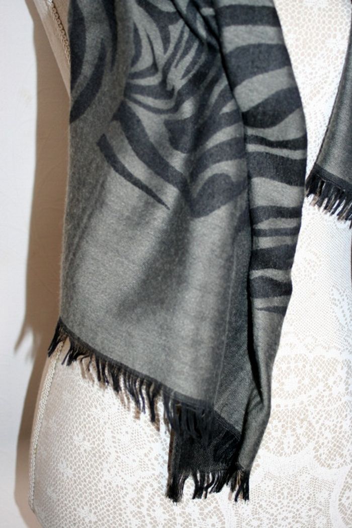 Foulard gris, 180x72cm, quelques fils tirés, 100% viscose, 140g