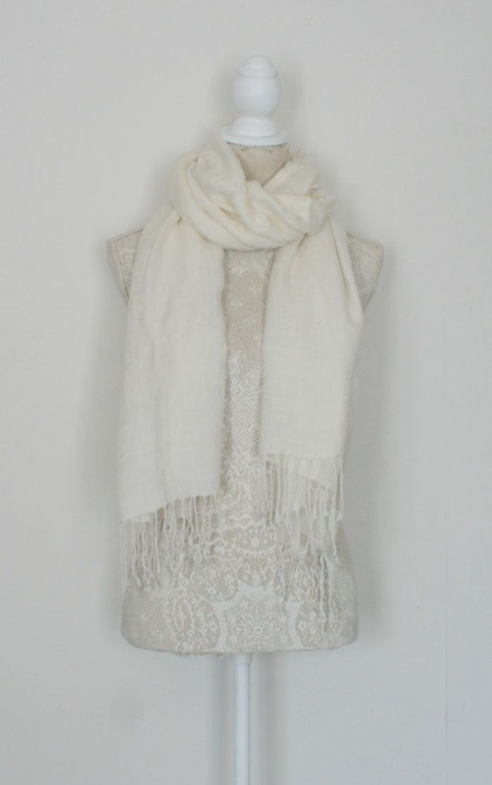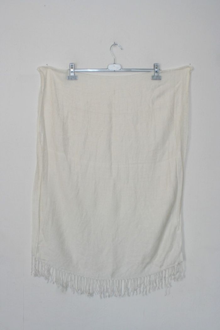 Echarpe légère blanc cassé 160x70cm, plusieurs fils tirés, pas uni mais les motifs sont difficilement perceptibles en photo, 150g