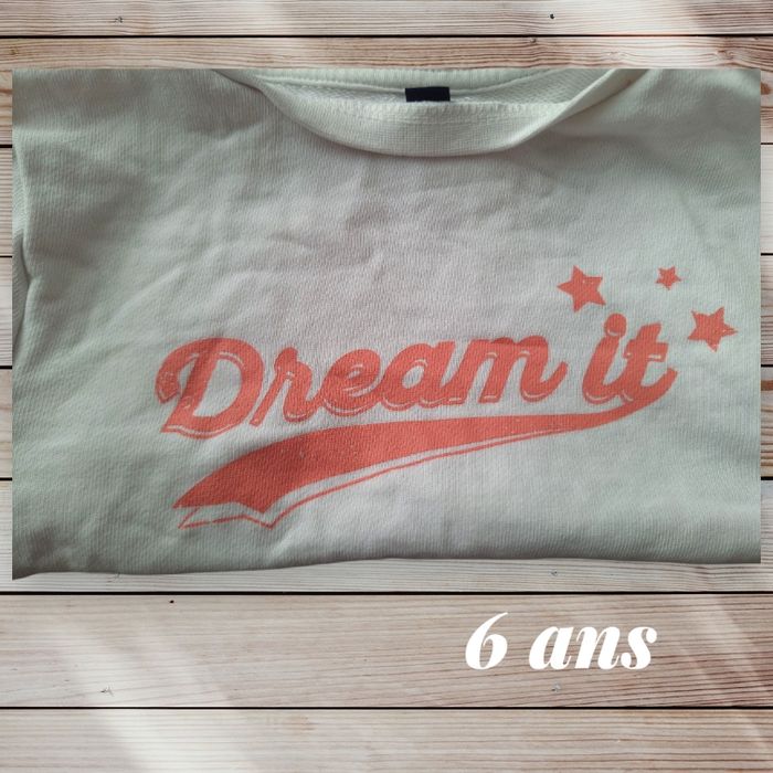 ✨🌟 Sweat KIABI 6 ans – Message "DREAM IT" 🌟✨ 🤍🧡 En super état – doux, confortable & plein de style 😍 💭 Détails qu’on adore : ✔️ Inscription tendance "DREAM IT" 🌈💫 ✔️ Couleurs blanc & orange 🍊 – parfait pour un look vitaminé ✨ ✔️ Idéal pour l’école, les sorties ou cocooner 🌸 📏 Taille : 6 ans 🏷️ Marque : Kiabi 📦 Envoi rapide & soigné 💌 🔥 Un vrai coup de cœur à petit prix 🛒 🤍 #kimiee_6ans 🤍 #sweatenfant #kiabikids #sweatfille6ans #vetementsenfants #modeenfant #lookenfant #kidsfashion #occasionfille #petitlook #videDressingKids 🌈 Pour info 🌈 ➡️ Je mets régulièrement en ligne des vêtements fille 6 ans + autres tailles, chaussures & jouets 🧸👟👗