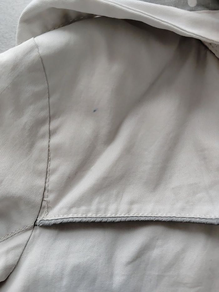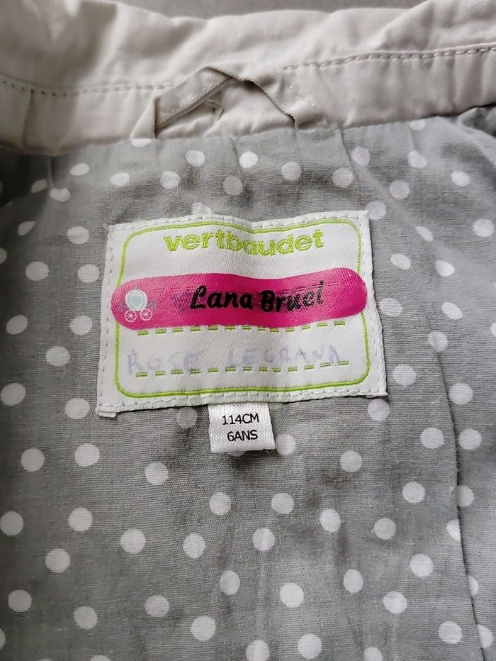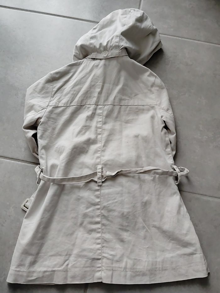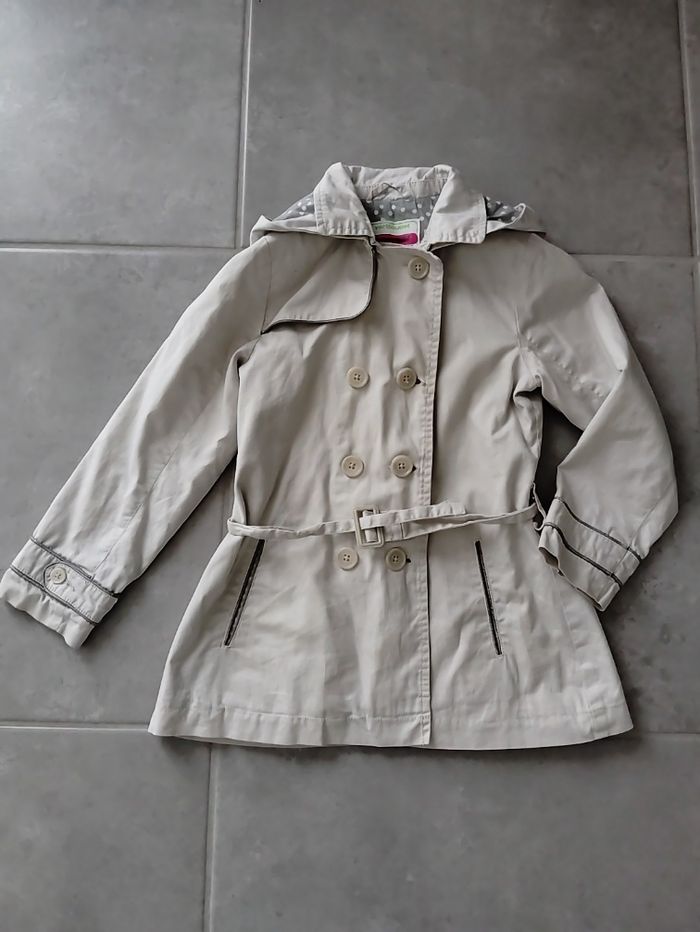 Trench fille 6 ans Quelques petites tâches (voir photo) Sur le devant, un peu jauni. (Dernière photo) Nom et prénom inscrit sur l'étiquette.