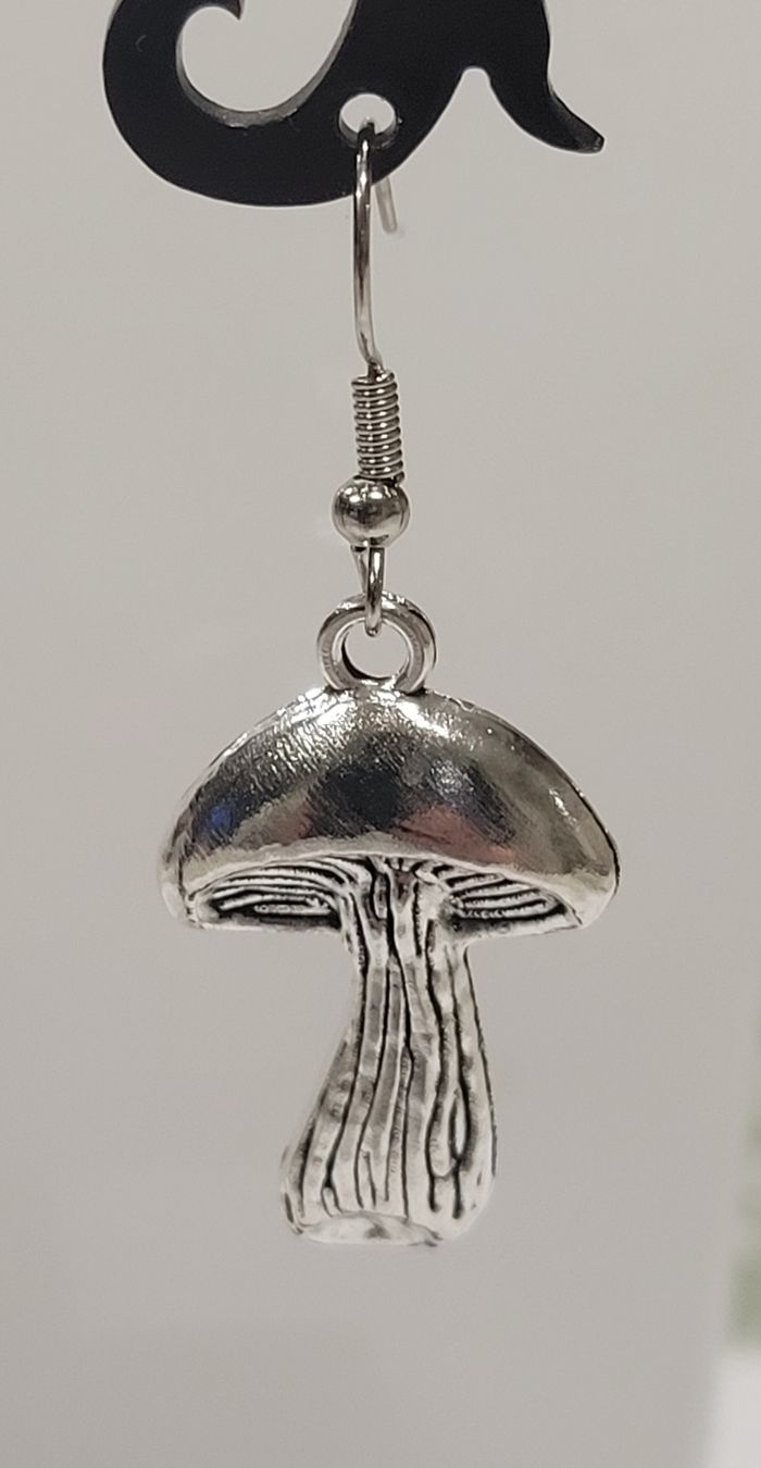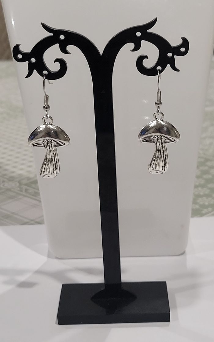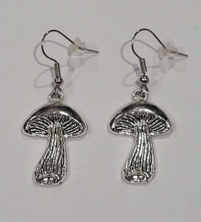 BOUCLES D'OREILLES CHAMPIGNON ! NEUF! 1 jolie paire de boucles champignon . Coloris argenté. Hauteur des boucles : 4,5 cms .largeur : 1,8 cms N'hésitez pas à regarder mes autres ventes. Produit sous blister! Envoi rapide et soigné