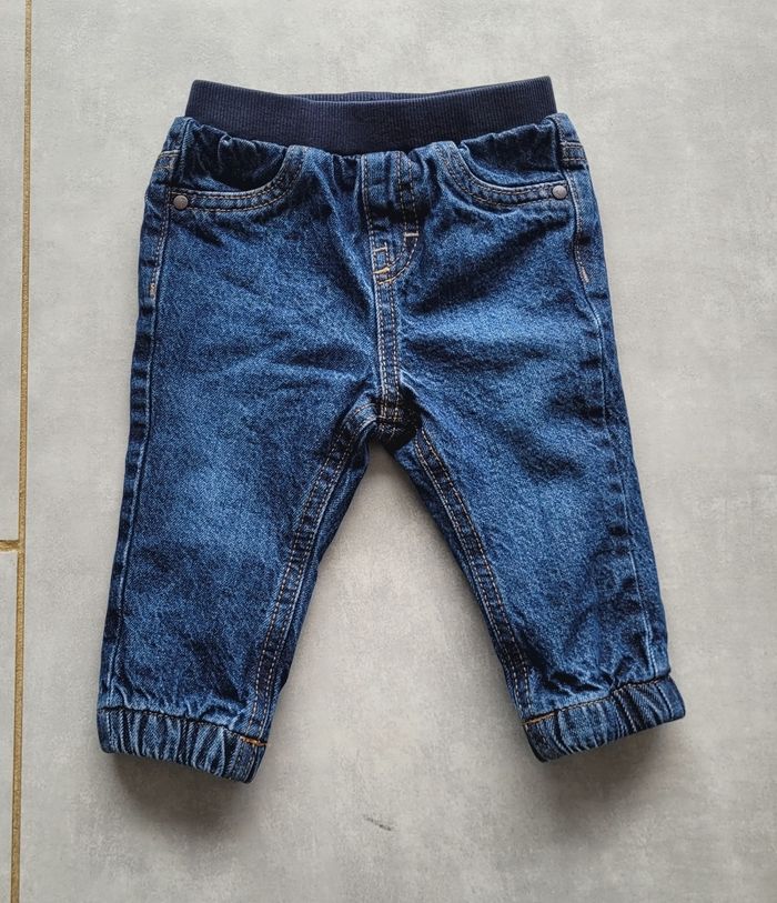 Jean légèrement doublé, de couleur marine, de la marque Kiabi, taille 9 mois (69-72 cm), en très bon état. Article lavé pour la vente.