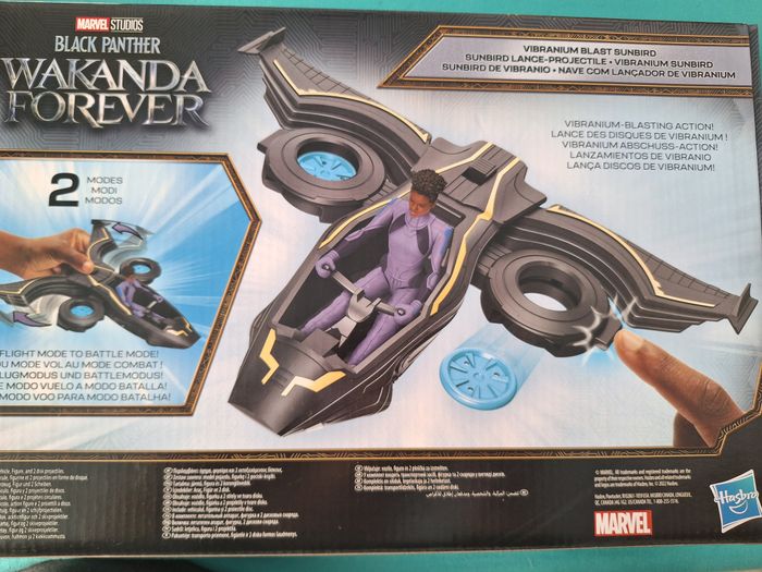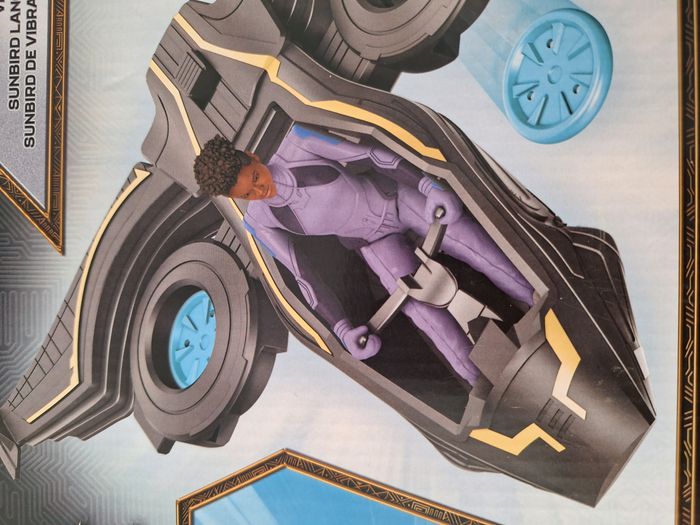 Le véhicule Sunbird Lance-projectile de Shuri a 2 modes. On peut jouer en mode vol, la position originale du véhicule, ou passer au mode combat en faisant glisser les ailes vers l'arrière