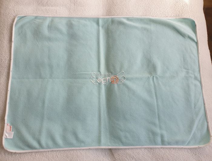 Plaid pour bébé Il mesure environ 70cm x 100cm Turquoise. Bordure blanche avec des étoiles.