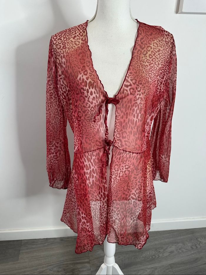 Kimono en mesh rouge et doré léopard Y2K TU - photo numéro 2