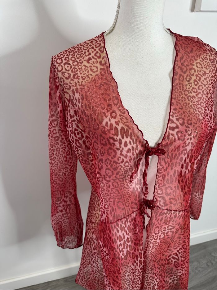 Kimono en mesh rouge et doré léopard Y2K TU - photo numéro 6