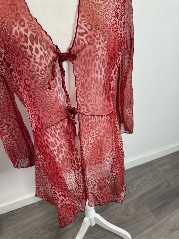 Kimono en mesh rouge et doré léopard Y2K TU - photo numéro 7