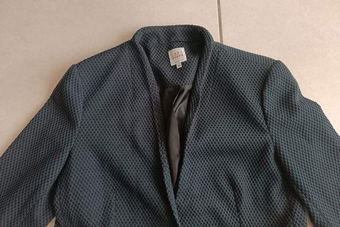 Bonjour, Vends une veste de tailleur. Taille 38. Bleu marine. Très bon état.