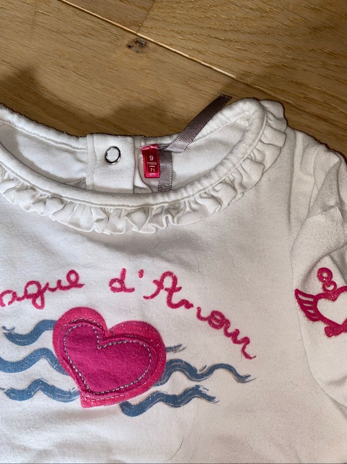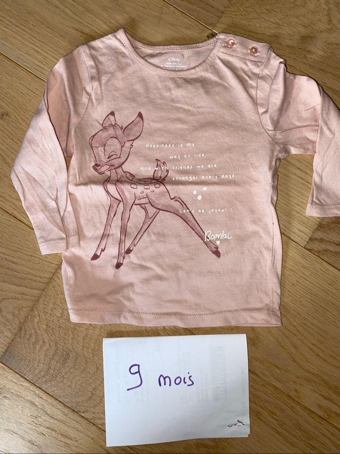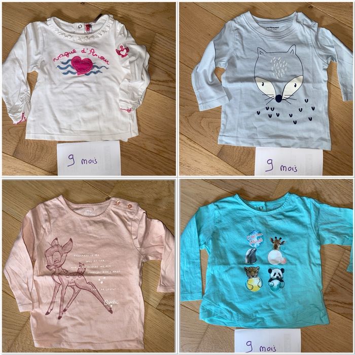 Lot hauts demi-saison / hiver – 9 mois 🧵 Lot varié de hauts manches longues pour l’automne et l’hiver 🍂❄️ 👕 Gilet laine Orchestra motif chat à paillettes (porté mais sans défaut) 👕 Haut manches longues Orchestra col vague, très bon état 👕 Haut manches longues Vertbaudet bleu motif renard 👕 Haut manches longues Disney Bambi rose 👕 Haut turquoise pailleté animaux (petite tache de javel visible en photo) 📍 État : Globalement très bon, avec un petit défaut indiqué 💬 Des pièces adorables et confortables, parfaites pour la demi-saison et l’hiver ✨ 🎁 Réductions automatiques sur les lots activées 🏷️ @9mois_nasta37
