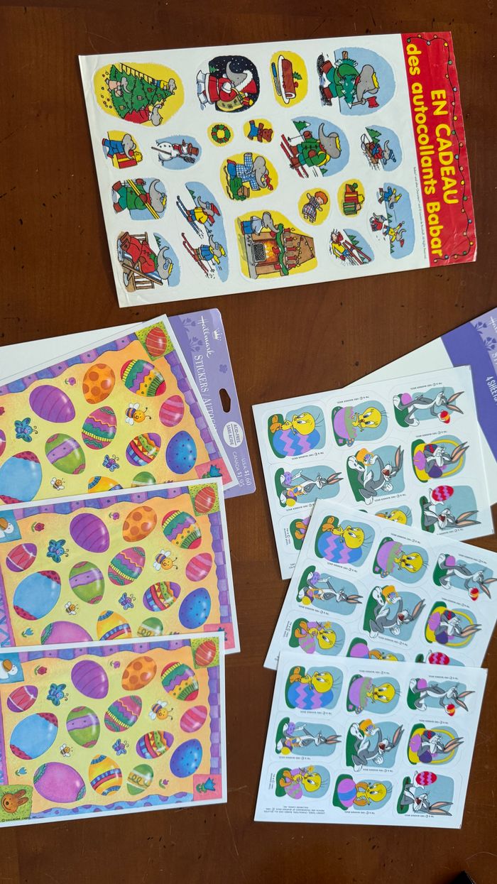 Autocollants Babar, Titi, oeufs de paques