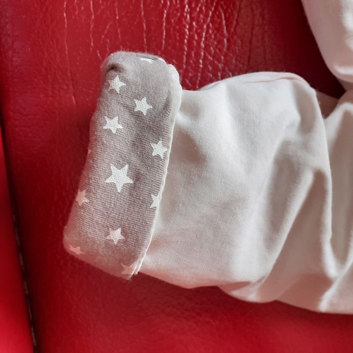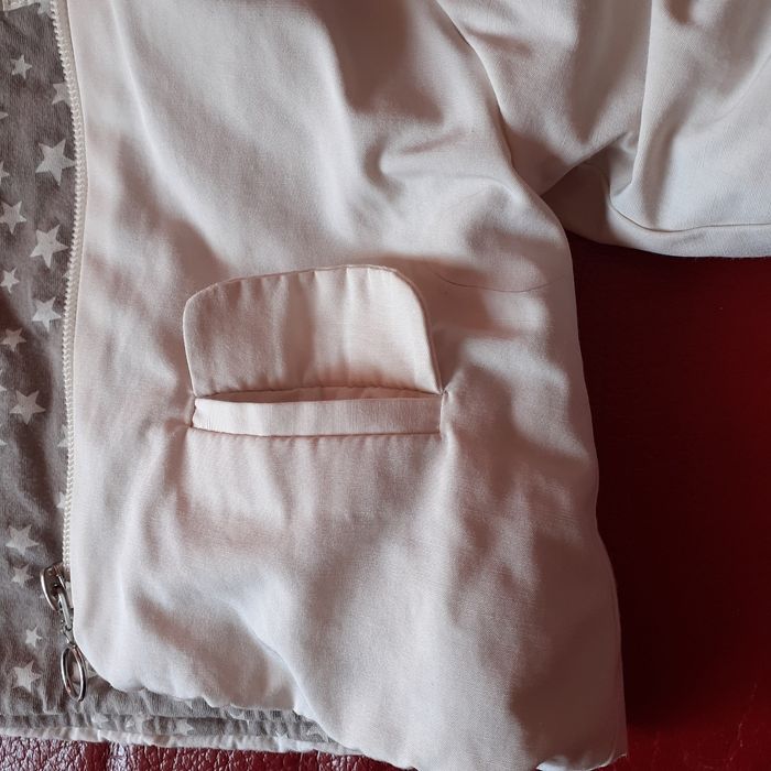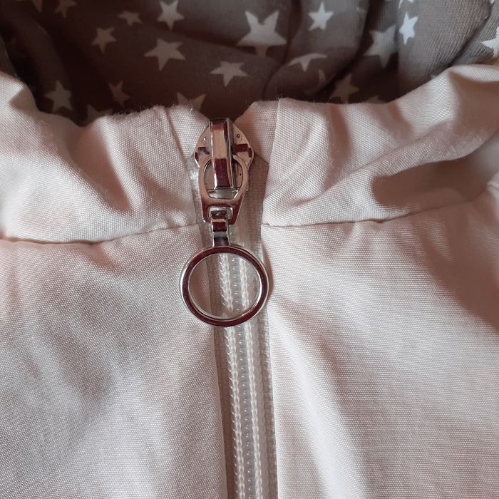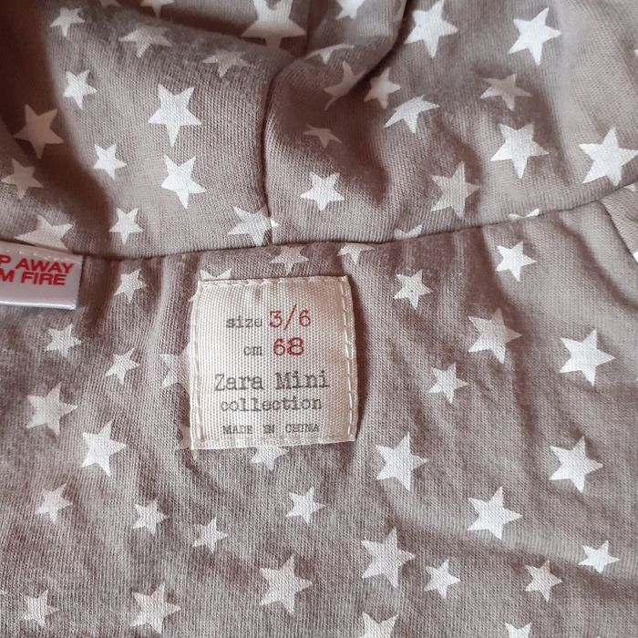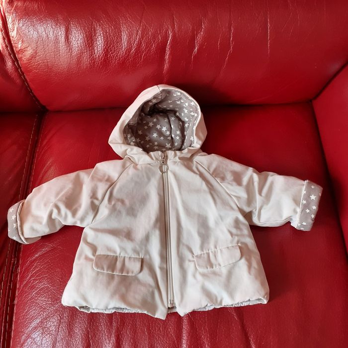 Anorak marque Zara Mini collection; taille 3-6 mois. Extérieur coloris crème; intérieur motif "étoiles" sur fond grisé. Fermeture zippée; tirette en métal argenté. 2 poches devant. Anorak 100% polyester; lavable à 30°. Dimensions : Hauteur épaule-bas de 26 cm; largeur sous les bras de 25 cm // voir photos pour détails