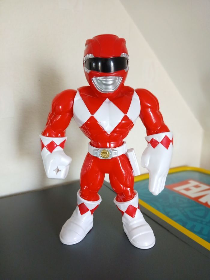 Figurines Power Ranger rouge et vert Mega Mighties Dimensions : 26cm le vert , 24 cm le rouge (haut en bas) Utilisé comme décoration, tbe.