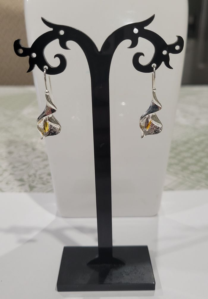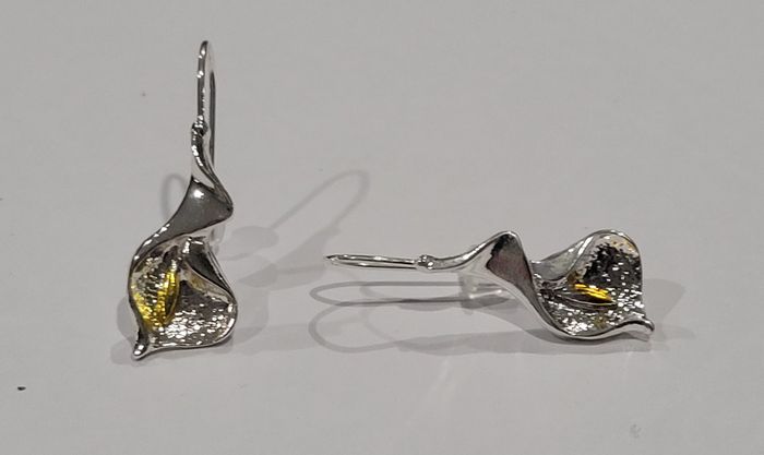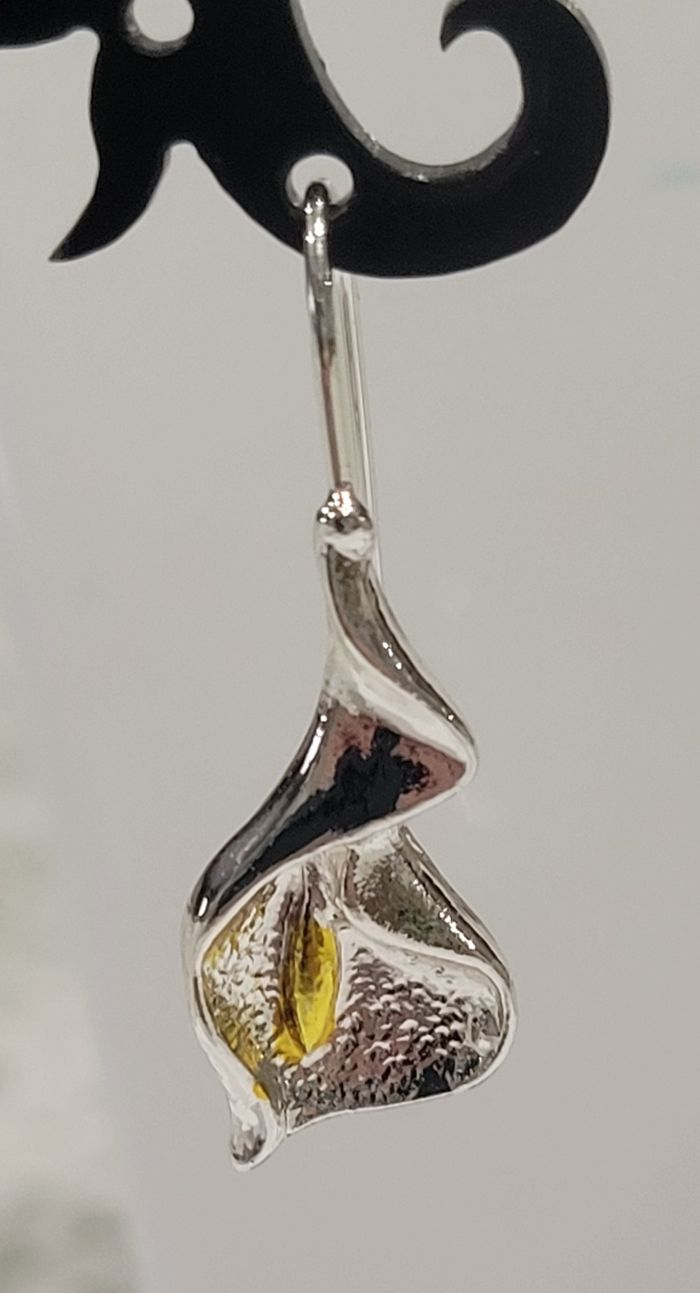 BOUCLES D'OREILLES FLEUR ARUM ! NEUVE ! Tiges coloris argenté. Motif fleur arum Dimensions : 3,4 x 1,2 cms N'hésitez pas à regarder mes autres ventes. Envoi rapide et soigné.