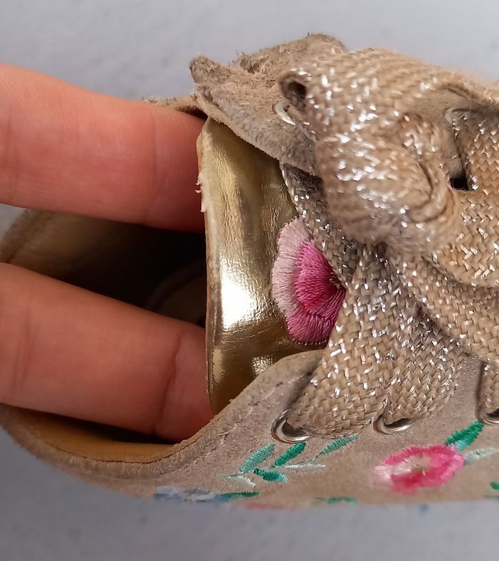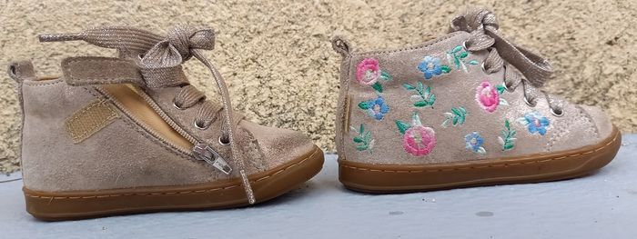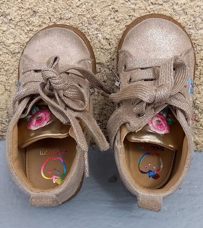 Bonjour, Je mets en ventes les chaussures de ma fille de marque shoo pom taille 22 achetées 83 euros neuve. Elles sont en très bon état car elle les a peu portées mais elles présentent malgré tout des traces d'usures notamment au niveau de la pointe des pieds ou elles ont noircir et sur les languette où elles sont légèrement accrochés (photos ci-joint). Cordialement