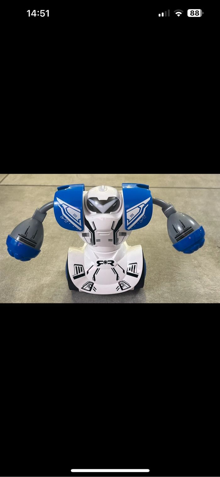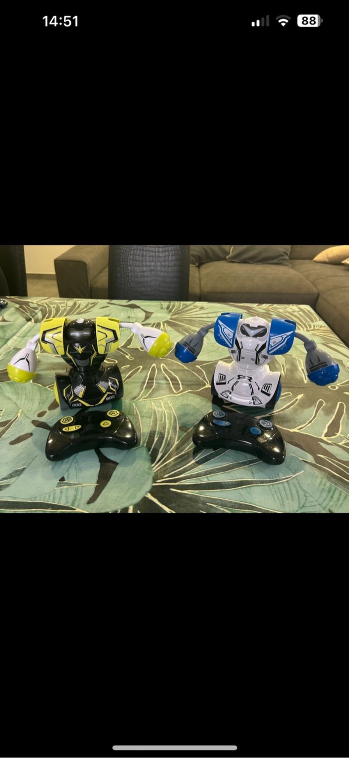 Lot de 2 robots Silverlit pour combat de boxe bleu et vert Les robots sont excellent état (jamais utilisés, seulement conservés dans un placard). Cependant les manettes possèdent quelques micro rayures