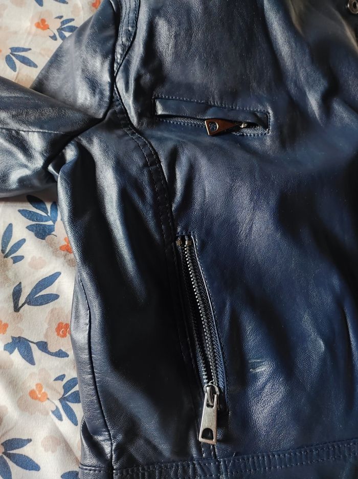 Manteau style perfecto molly Bracken Taille XS bleu marine Il est comme neuf quasi jamais porté seul des marques d'épingles sont visibles j'ai fait l'erreur de l'étendre mouillé avec les épingles et non à plat... Mais pas très visibles pour moi. Maison sans animaux ni fumeurs.