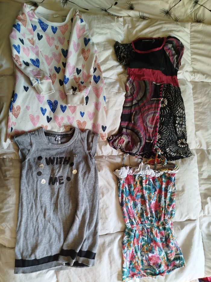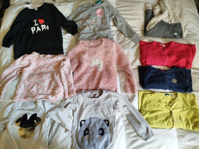 Vend lot 5 ans fille : - 6 pulls - 4 gilets - 8 tee shirts - 2 shorts - 2 jupes - 2 pantalons - 2 jeans - 1 leggings court - 4 robes - 1 chemise de nuit - 1 pyjama Soit 33 pieces.