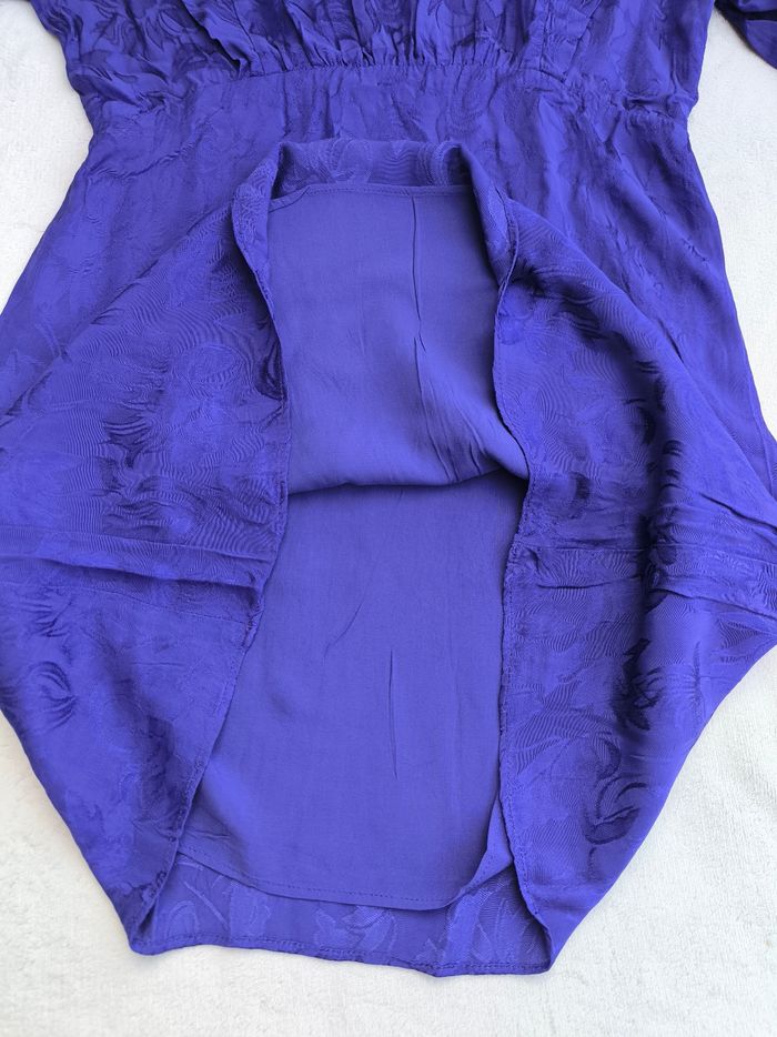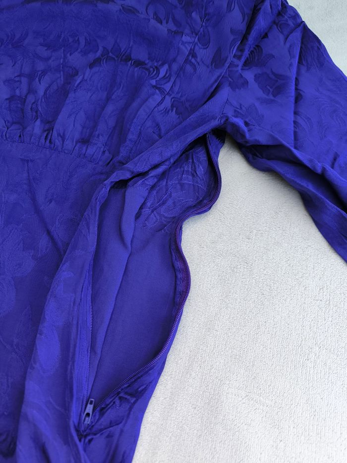 Robe à manches longues Marque Naf Naf Taille 38 • Coloris violet bleuté (différent des photos) • Coupe style empire • Imprimés/Motifs fleurs • Col rond avec goutte au dos • Fermeture éclair sur le côté • Manches bouffantes avec boutons • Volants sur le haut • Doublure • Tissu fin Largeur épaule à épaule non étirée : 35 cm Largeur épaule à épaule étirée au maximum : 40 cm Largeur aisselle à aisselle non étirée : 45 cm Largeur aisselle à aisselle étirée au maximum : 55 cm Longueur manche : 59 cm Longueur totale : 84 cm Longueur aisselle : 60 cm Peu portée, en très bon état #evelyne_taille_38