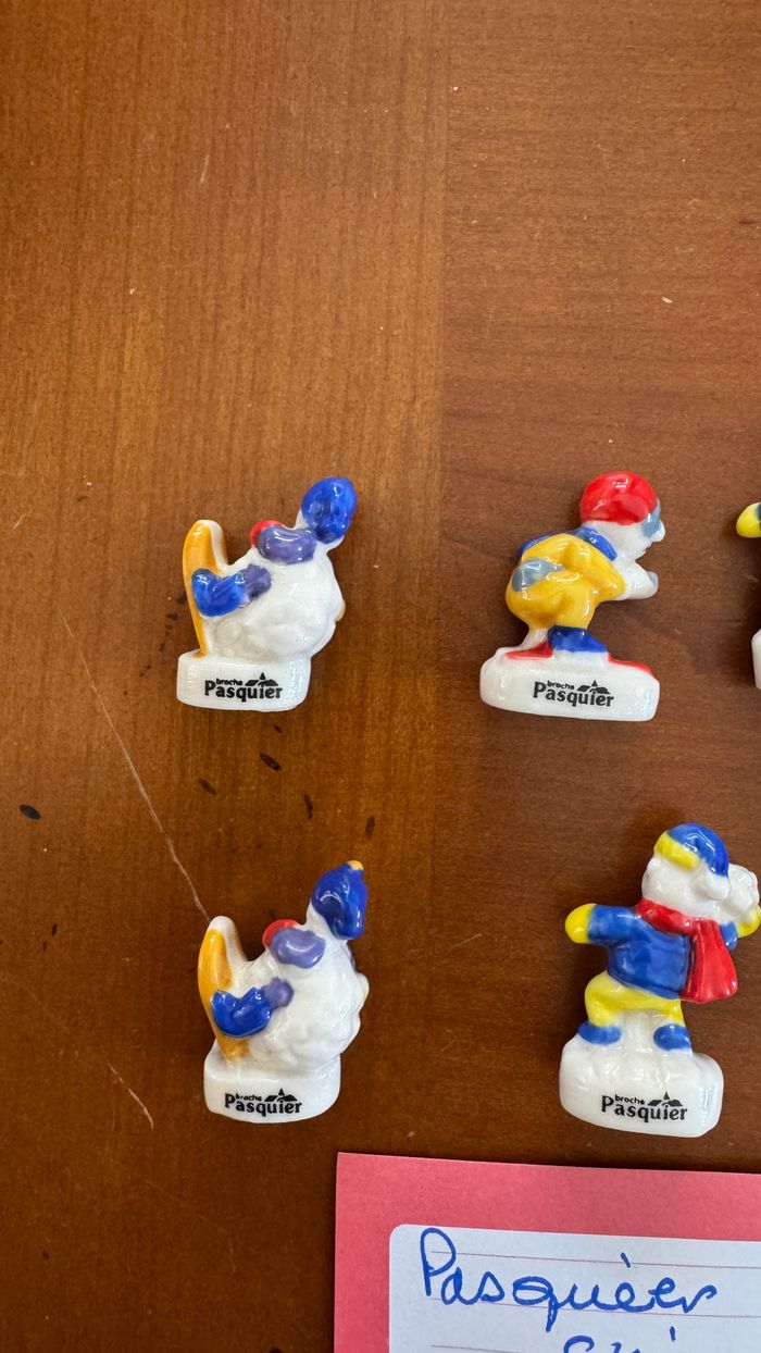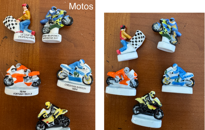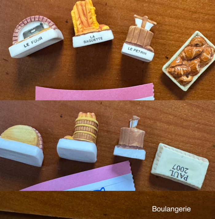 J’ai différentes fèves à vendre sous les thèmes Motos, TGV, Métier, Boulangerie, Animaux, Fable de la fontaine, Champion, Pasquier,