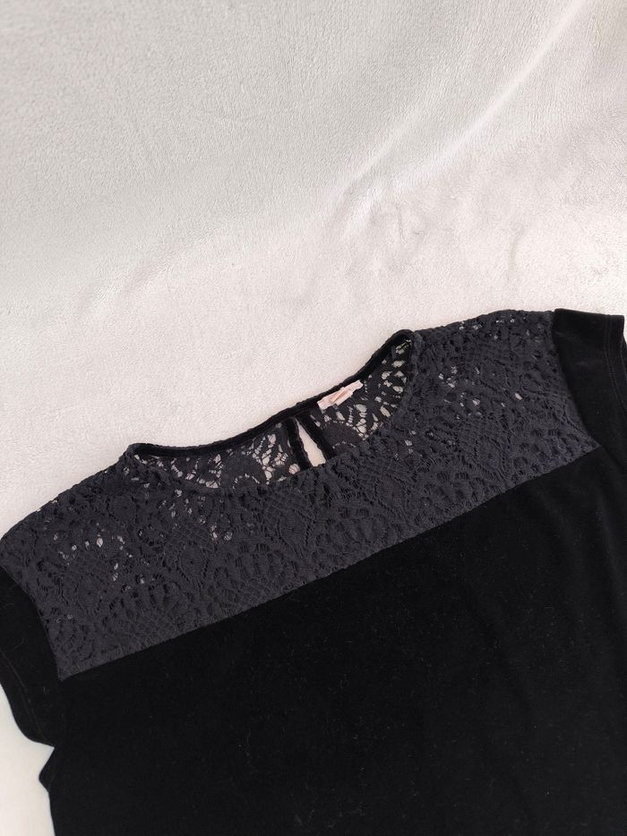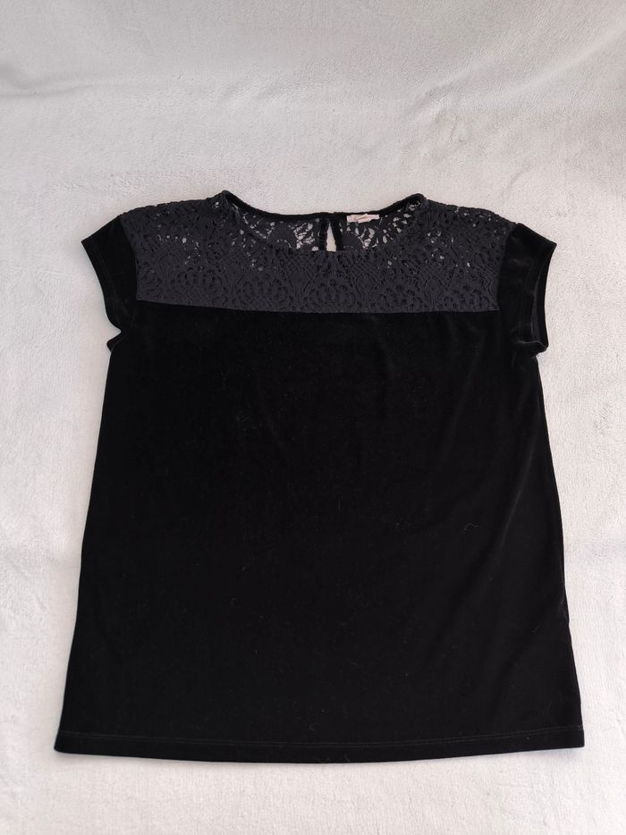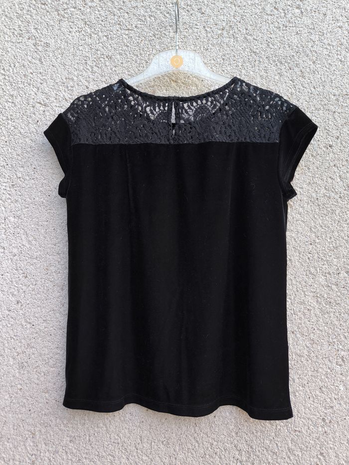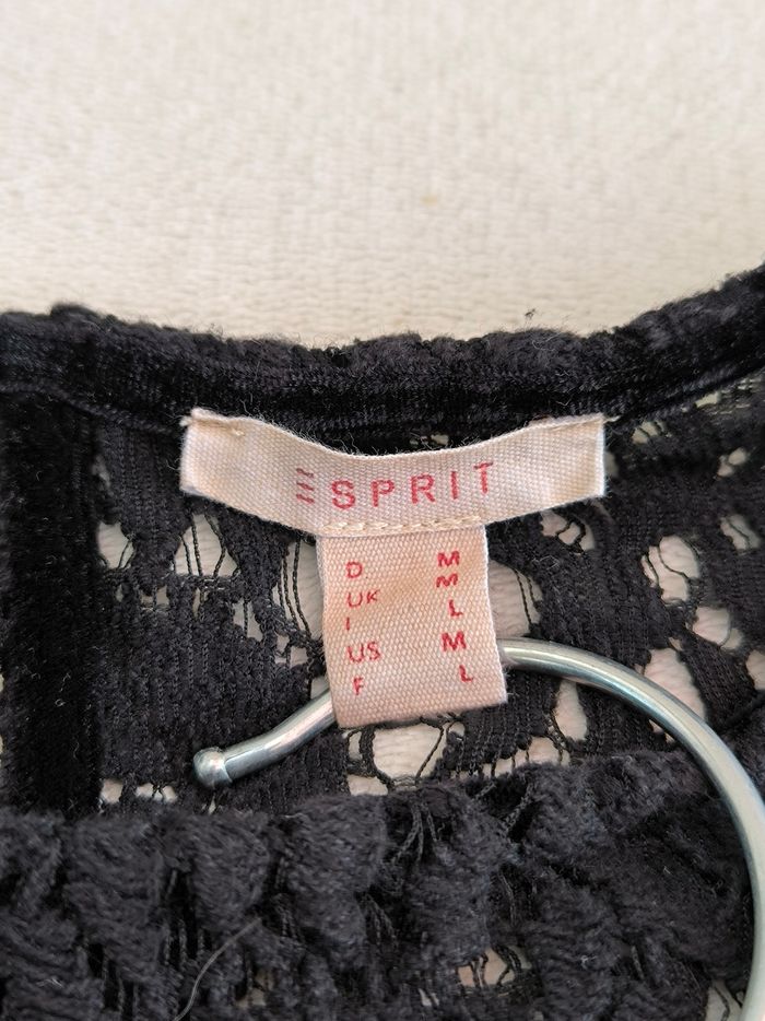 T-shirt à manches courtes Marque Esprit Taille L, 40 • Coloris noir • Haut avec broderie • Goutte au dos • Velours, doux • Stretch Largeur épaule à épaule non étirée : 48 cm Largeur épaule à épaule étirée au maximum : 60 cm Largeur aisselle à aisselle non étirée : 49 cm Largeur aisselle à aisselle étirée au maximum : 70 cm Longueur totale : 63 cm Longueur aisselle : 40 cm Effet chic, convient pour les fêtes Comme neuf #evelyne_taille_40