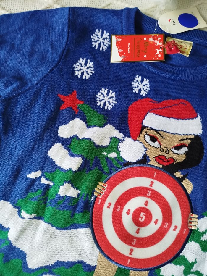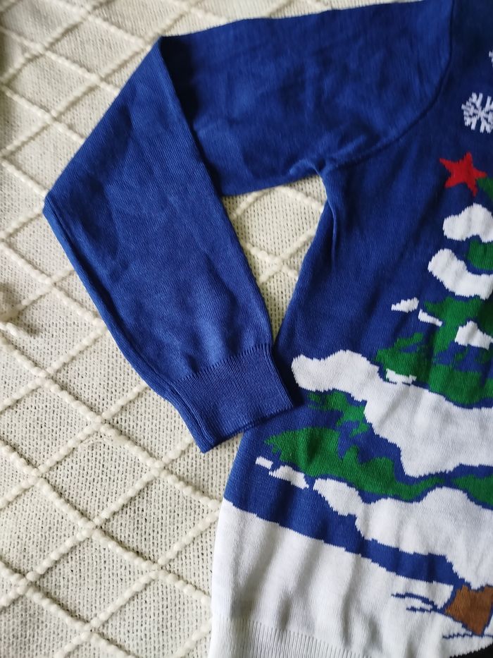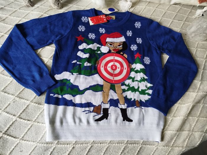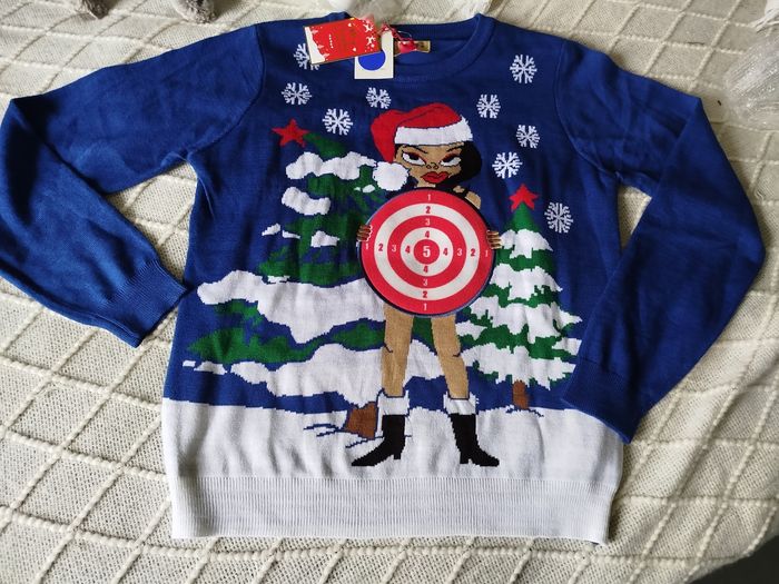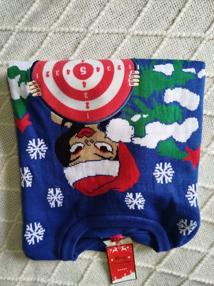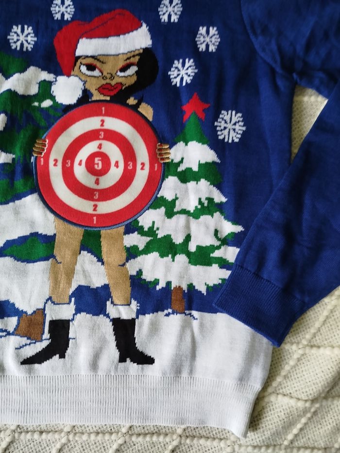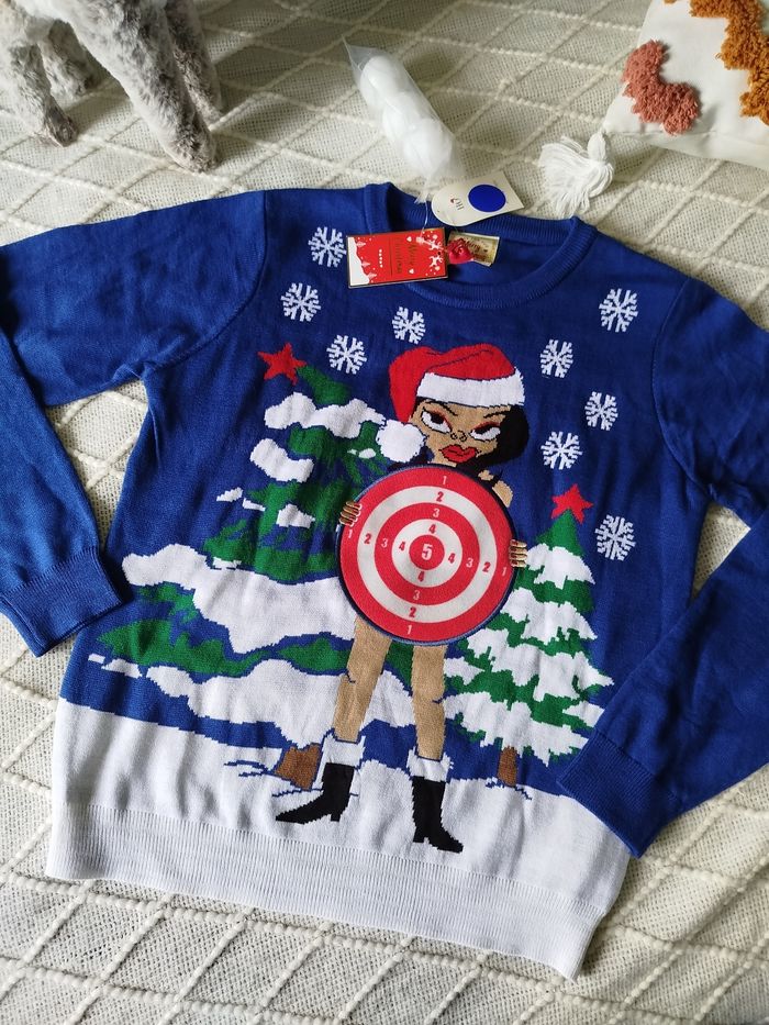 Le pull de Noël 🎅🎄bleu "Mère noël" est parfait pour ajouter une touche de magie à vos soirées de fin d’année ! Fabriqué à partir de fibres recyclées (100% acrylique ), ce pull allie style et engagement écologique. Son design adorable met en avant un visage jovial de La mère noël avec une véritable cible et c'est 3 boule afin de visé juste 🙂😉, notre mère de Noél préféré, idéal pour apporter une touche de fantaisie et de douceur à votre tenue.
