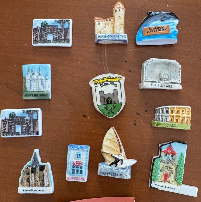 J’ai différentes fèves à vendre sous les thèmes, f!ves blanches, dorée, masques, figurine masqué, Puy du fou, astrologique, Pays, villes, village, drapeau, département