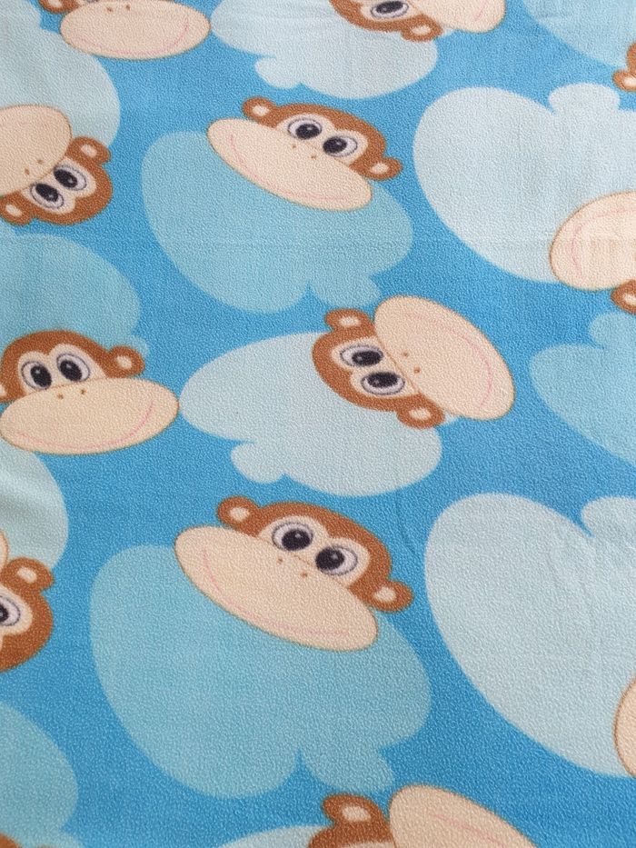 Petit plaid décoré singes. Il mesure environ 1,mx1,40m. Il a quelques fils tirés défauts dus à son utilisation. (Voir photos).